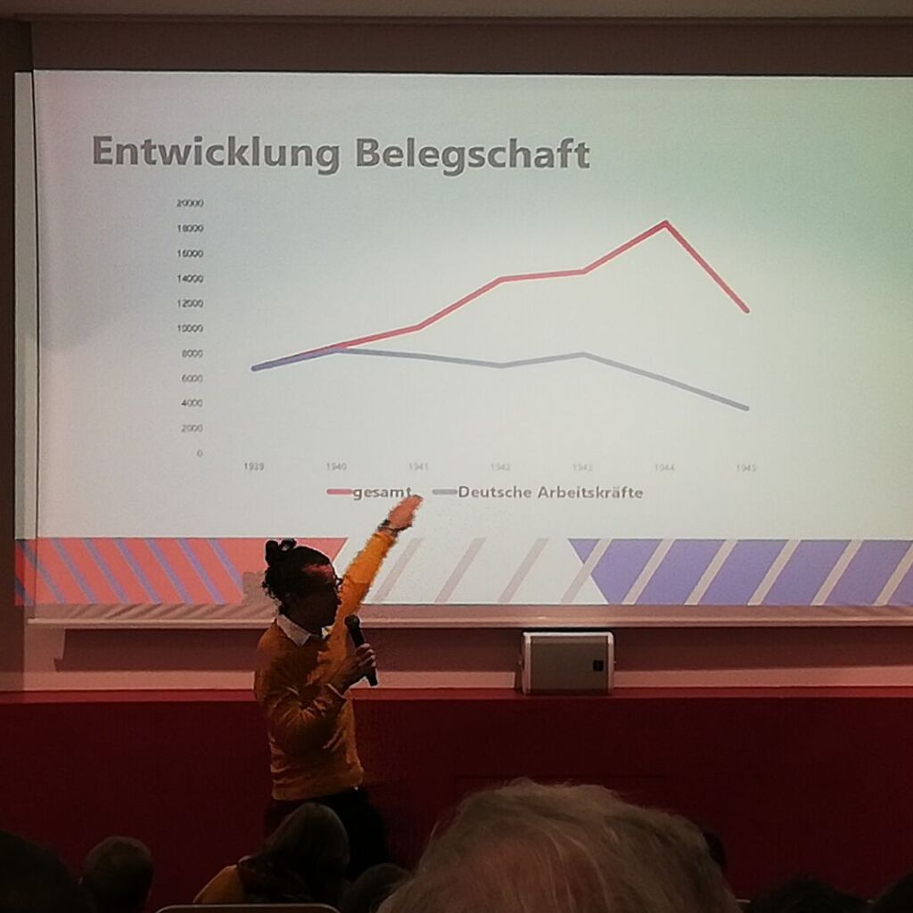 Das Interesse an der Veranstaltung, die mit ca. 60 Personen sehr gut besucht war, war groß. In der anschließenden Diskussion der Anwesenden wurden verschiedene Aspekte der lokalen Geschichtsarbeit u. a. durch den Ludwigsfelder Geschichtsverein e. V. und Christian Tepper vom Luftfahrt und Entwicklungsgeschichte Ludwigsfelde e. V. ergänzt. Auch Daniel Heimbach vom Stadt- und Technikmuseum Ludwigsfelde war anwesend, sowie Vertreter des Dokumentationszentrums NS-Zwangsarbeit aus Berlin.