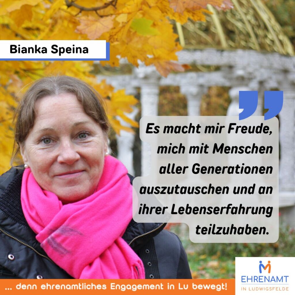 „Wir machen Bewegungsspiele, gehen spazieren und unterhalten uns über Literatur, Lieder, Witze oder Geschichten aus dem Leben. Dabei erfahre ich viel über das Leiden anderer Menschen. Gerade dieser Austausch bewegt mich, dieses Ehrenamt auszuüben, und stellt einen wichtigen Beitrag zur Minderung von Einsamkeit dar.“