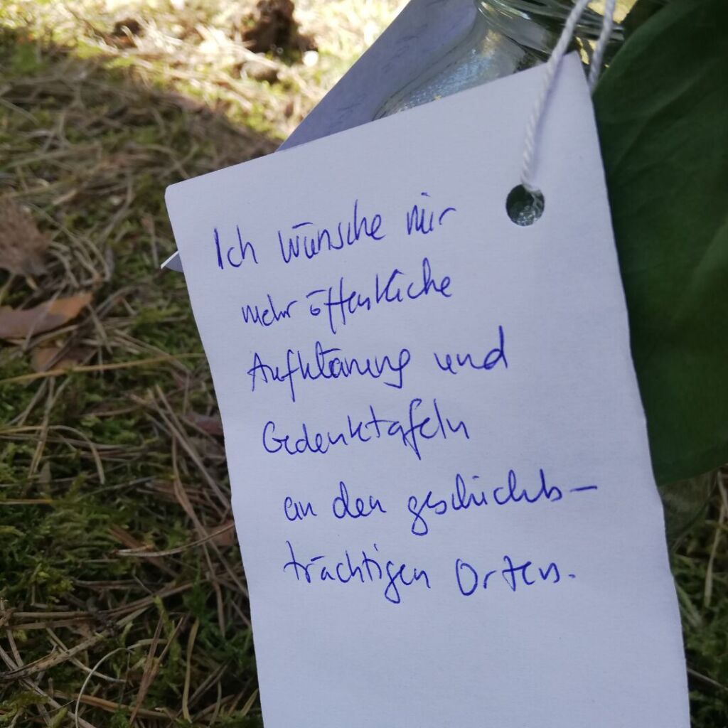 Vielen Dank für Organisation und Durchführung der Gedenkveranstaltung. Wir wünschen uns, dass der Wunsch an einer der Gedenkblumen in Erfüllung geht: